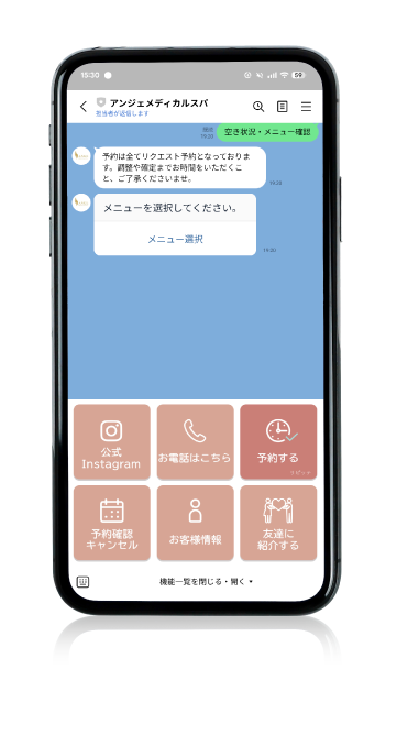 使用するスキンケア製品は、天然由来成分をベースに厳選。 敏感肌の方でも安心してご利用いただけます。 完全予約制のプライベート空間なので、他のお客様の目を気にせず リラックスできるのも魅力です。